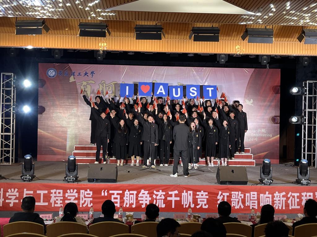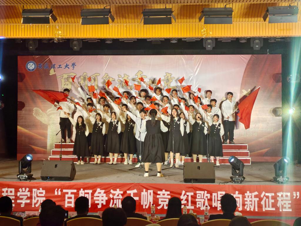 本次合唱比赛分为红歌和校歌两部分,一首首经典的歌曲,一段段动人的旋律,参赛学生斗志昂扬,以饱满的精神和嘹亮的歌喉激情演唱了《唱支山歌给党听》、《我的中国心》、《我爱你中国》等红色经典曲目,在红歌合唱声中抒发了爱党爱国之情。在校歌《大学无疆》合唱声中传承安理精神,计科学子们把对学校的热爱融汇到每一句歌词当中。各合唱曲目形式异彩纷呈,合唱期间还不时穿插乐器伴奏、诗歌朗诵等,赢得现场评委和观众的一致好评。经过激烈角逐,最终计算机23-7班斩获一等奖,区块链23-1班等3个班荣获二等奖,信息安全23-1班等5个班荣获三等奖,信息安全23-2班等9个班获得优秀奖。