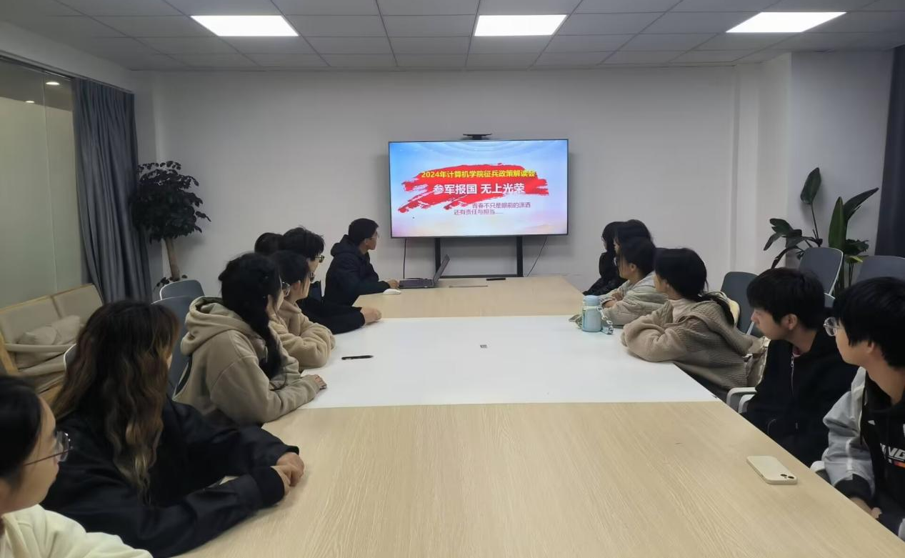 2024年上半年征兵工作启动,12月6日下午,计算机学院在校“一站式”学生社区召开征兵动员会议。学院相关工作人员、毕业班辅导员、毕业班征兵联络员以及有入伍意向的学生参加会议。