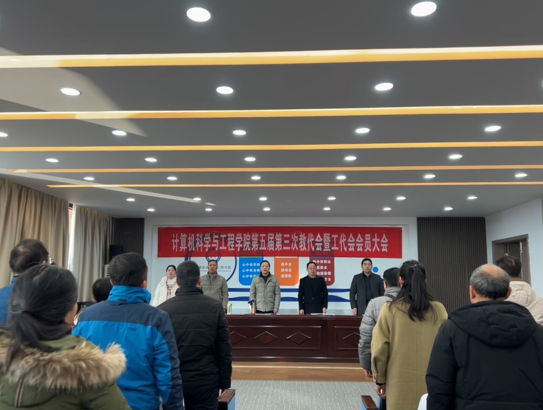 大会在庄严的国歌中拉开序幕。会议认真听取、审议了计算机科学与工程学院2023年度工作报告。报告高举习近平新时代中国特色社会主义思想伟大旗帜,深入贯彻落实党的二十大精神,总结回顾了2023年学院在党建和发展两方面取得的成绩,客观分析了学院发展中存在的问题,并安排部署了2024年学院工作。