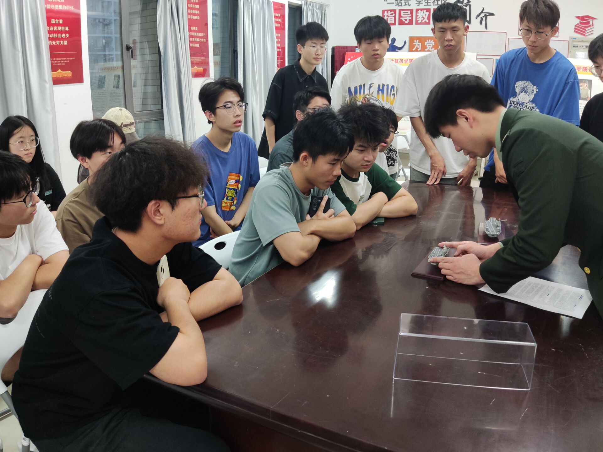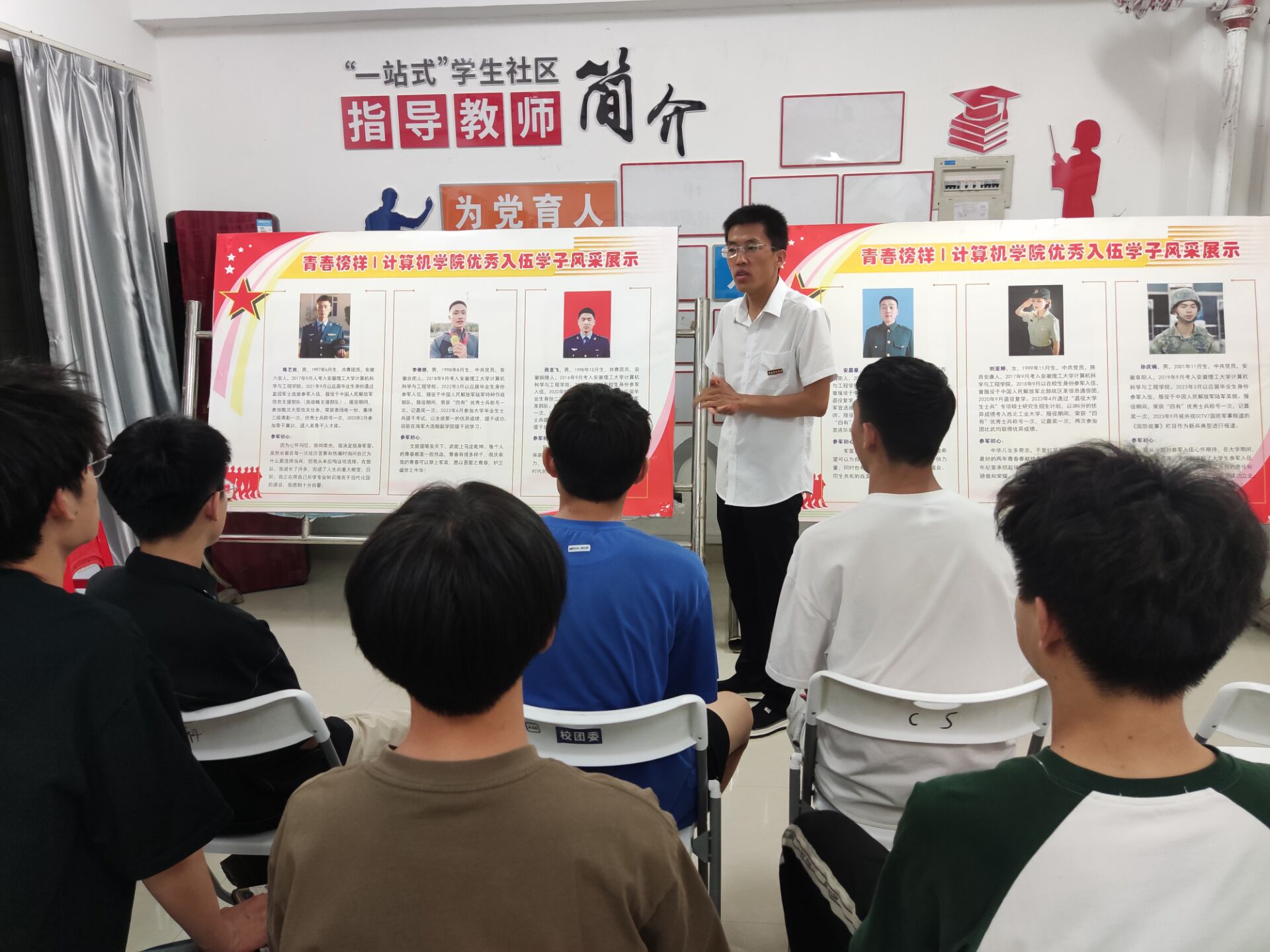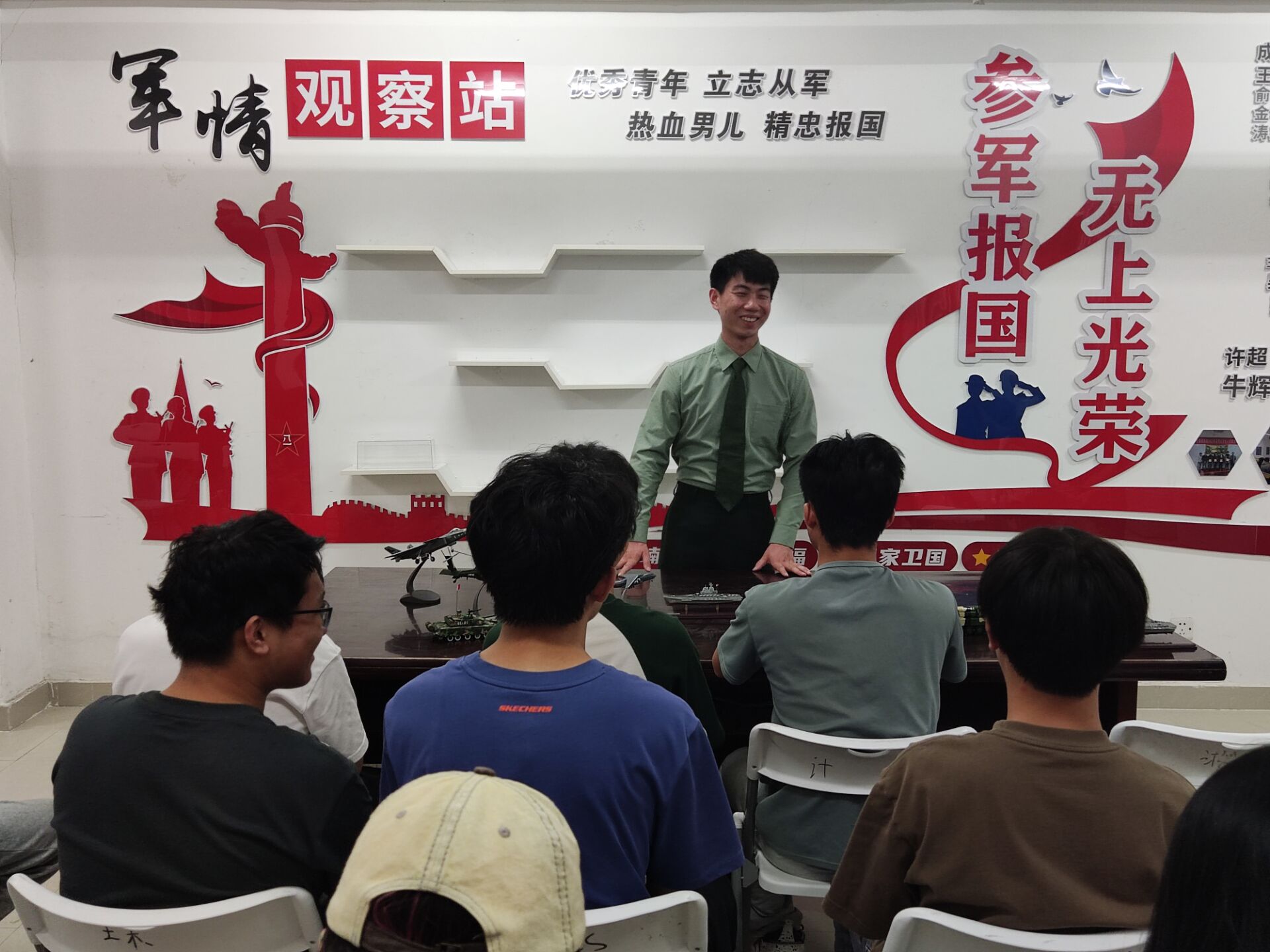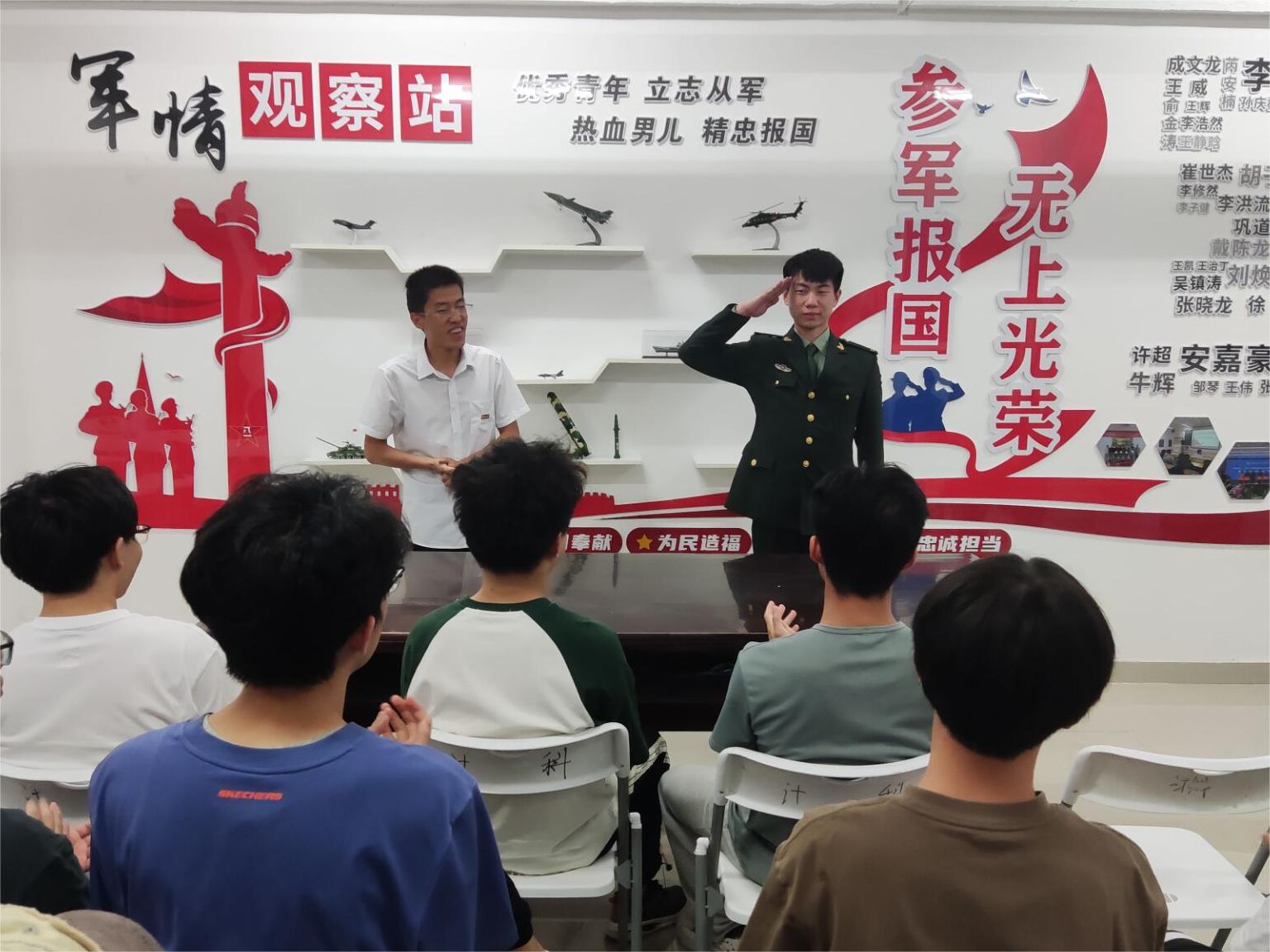 为进一步加强国防教育,提高学生国防意识,激发大学生的爱国情怀,6月4日计算机科学与工程学院在“一站式”学生社区国防教育基地暨计算机学院大学生征兵服务站举办了“走近国防兵器世界,体验‘国防利剑’铸就”活动。本次活动由计算机学院征兵工作联系人周丽军老师担任主讲人,并邀请三位优秀退役学生代表介绍,吸引了众多学生积极参与。