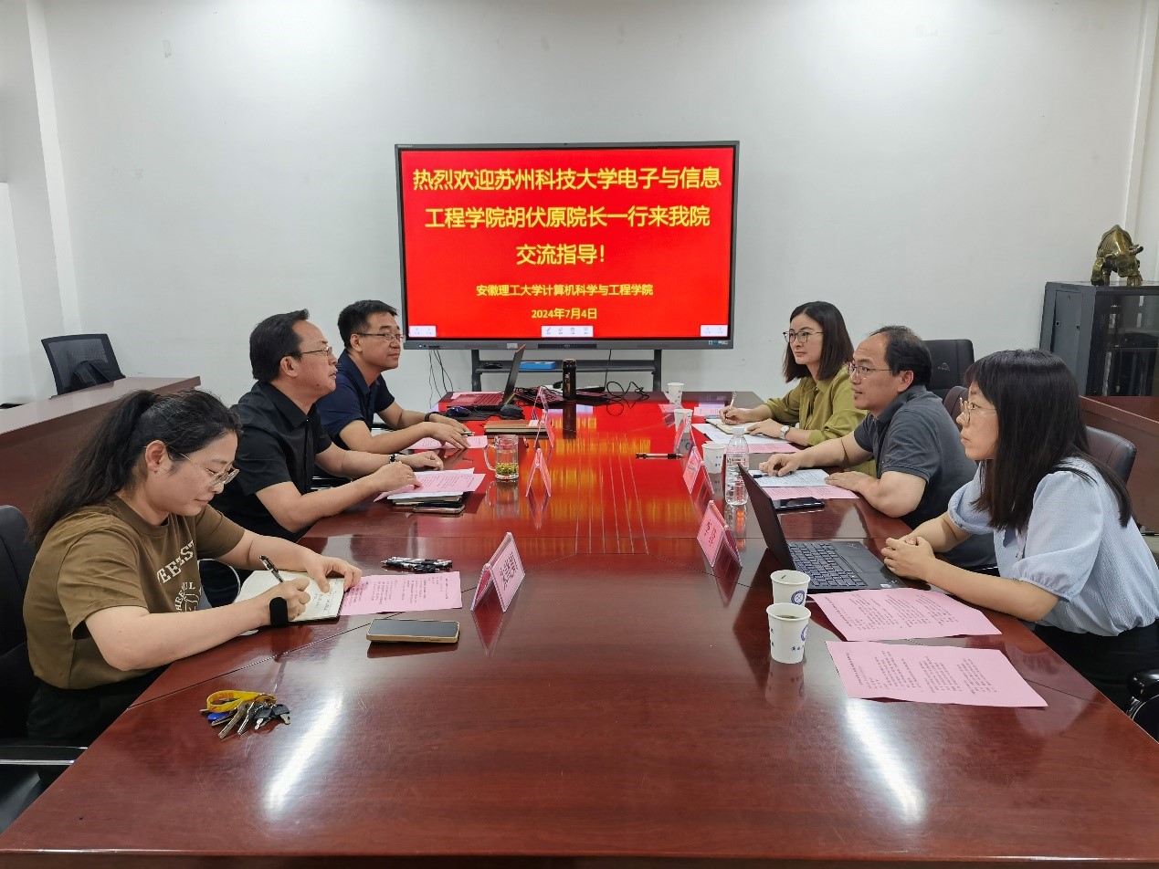 7月4日上午,苏州科技大学电子与信息工程学院院长胡伏原一行来学院调研区块链专业人才培养方案。学院院长方贤进在求本楼B403会议室接待了胡伏原一行。会议由学院副院长徐辉主持。