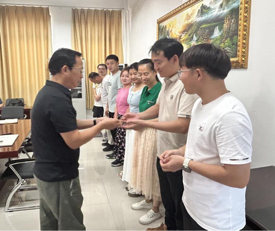 方贤进为新进教师正式授予校徽,并对新进教师的加入表示欢迎。他表示,希望新进教师能够秉承学校、学院的优良传统,尽快融入教学、科研团队,为学校和学院的教育事业贡献力量。