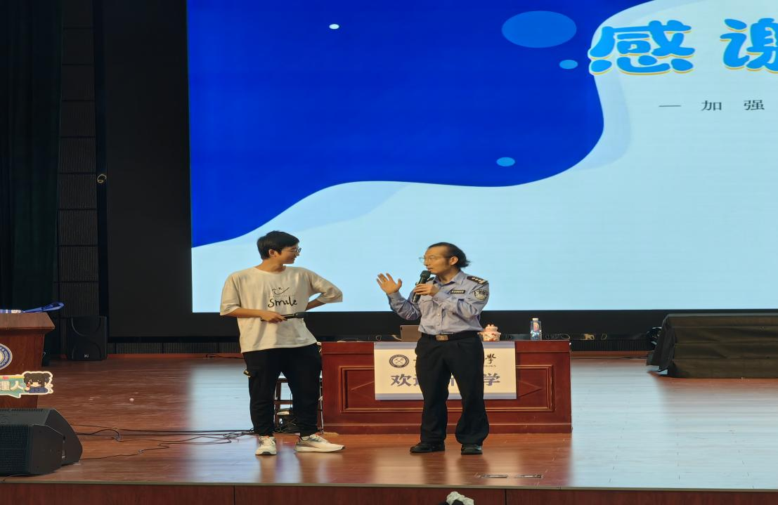 最后,王世春警官为全体新生带来了反诈第一课,他从诈骗类型、预防诈骗、被骗补救、助骗行为四个方面展开,详细解析了从传统的电话网络诈骗、中奖陷阱到新兴的网络钓鱼、冒充公检法等各种诈骗手段,帮助新生将反诈教育知识入耳、入脑、入心。