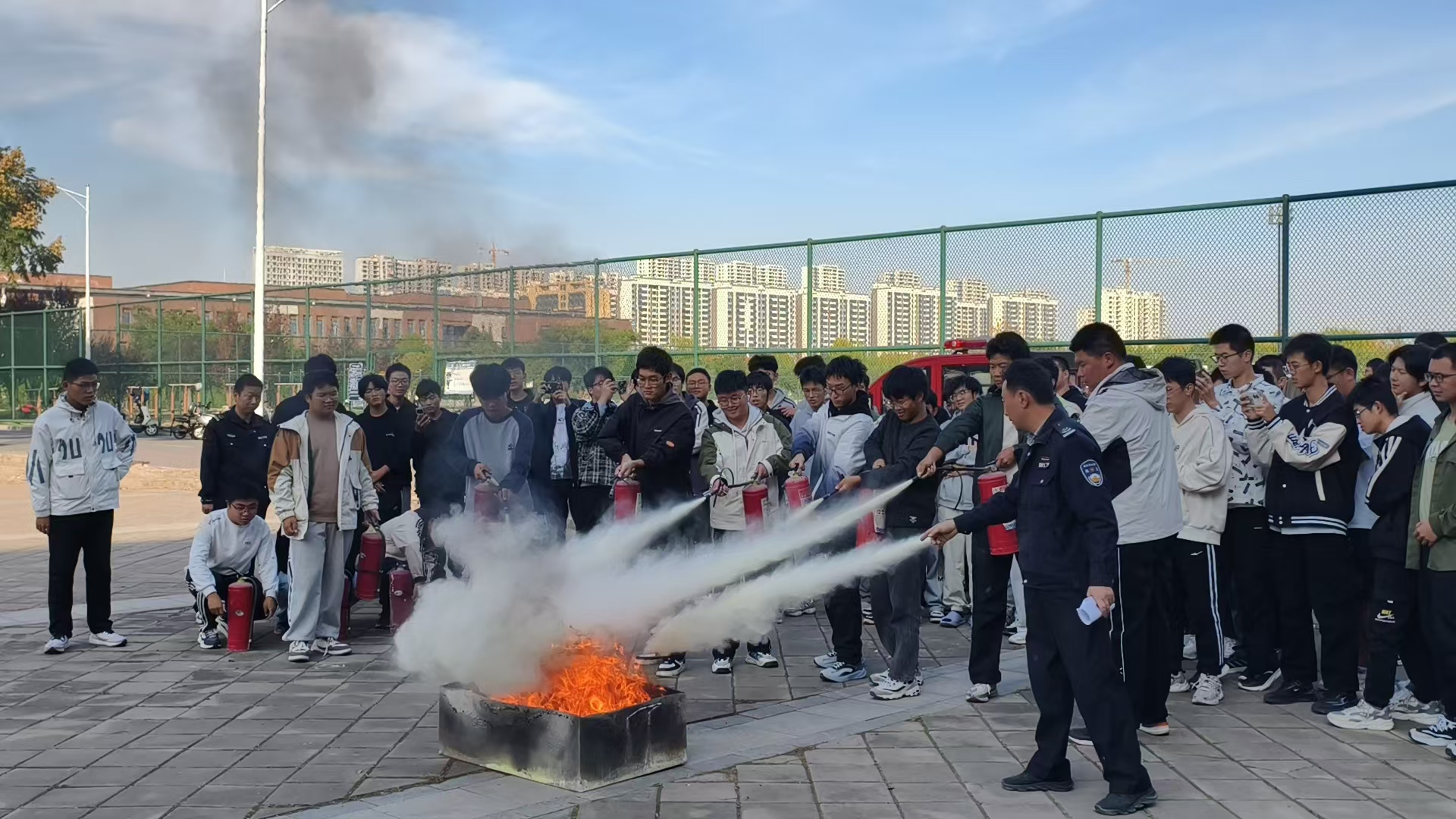 演练结束后,保卫处彭广峰就灭火器的正确使用方法以及注意事项为学生进行了细致、全面的讲解,按照“提、拔、握、压”的步骤,对准火源根部进行喷射灭火,学生进行了实操演练体验,取得了良好的效果。