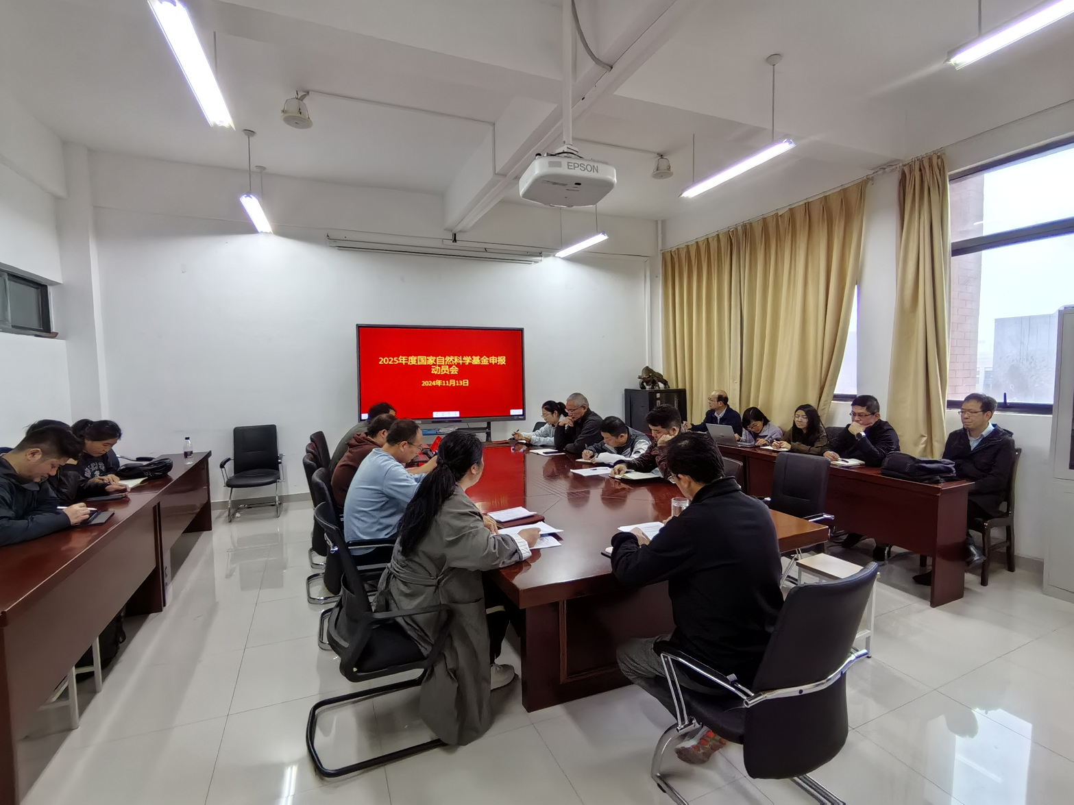 为了有效提升国家自然科学基金项目申报的数量与质量,进一步推动学院科研工作的蓬勃发展,11月13日,计算机学院在求本楼B403会议室召开了2025年度国家自然科学基金项目申报动员会,会议由学院副院长周华平主持。