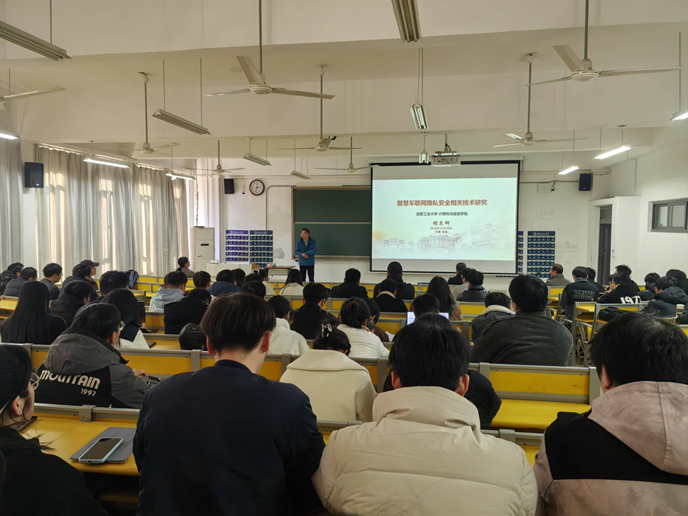 胡东辉作了题为“智能车联网隐私安全相关技术研究”的报告,在报告中,胡教授详细介绍了智能车联网安全这一交叉融合研究领域的重要性,并分享了其团队在车联网数据安全、信任机制、安全取证以及感知安全等方面的研究成果。他强调,随着智能汽车的发展日益智能化,对可信、安全的技术保障需求也日益迫切。他的团队致力于探索更为高效、可靠的安全技术,为智能车联网的发展保驾护航。