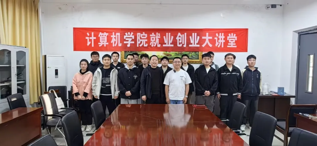 植树活动结束后,校友强小明与师生们一同移步至学院会议室,开展了就业创业大讲堂。强小明从自身工作、创业的经历出发,带领大家共同走进他的创业历程,分享在创业过程中的经验和心得,以及自己对待工作的态度。对于同学们的具体疑问和困惑,他耐心地逐一解答,结合自己的经历,提出切实可行的建议。