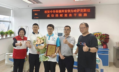 当日14:00,学校代表参加中华骨髓库首例向哈萨克斯坦捐献造血干细胞交接仪式。这份“生命的种子”将跨越千山万水,在第一时间送到哈萨克斯坦患者的身边,为小患者点燃重生的希望。