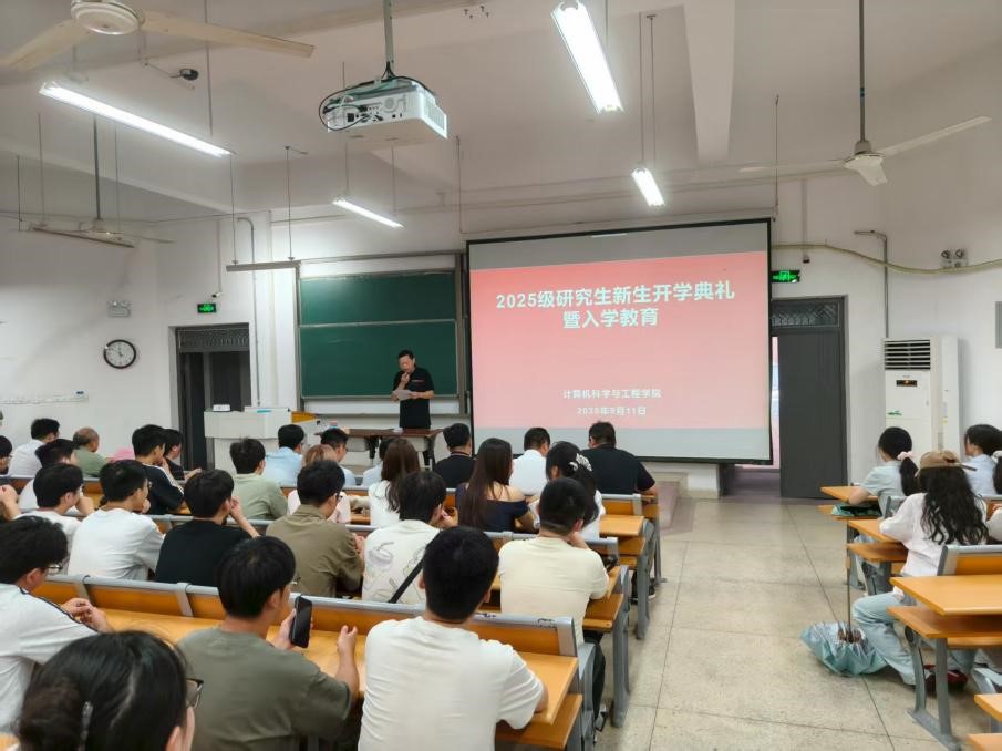 9月11日上午,计算机科学与工程学院在天工楼202举办2025级研究生新生开学典礼暨入学教育大会。学院党委书记王永祥等在校学院领导、导师代表、辅导员及全体研究生新生共同参加。大会由学院副院长葛斌主持。