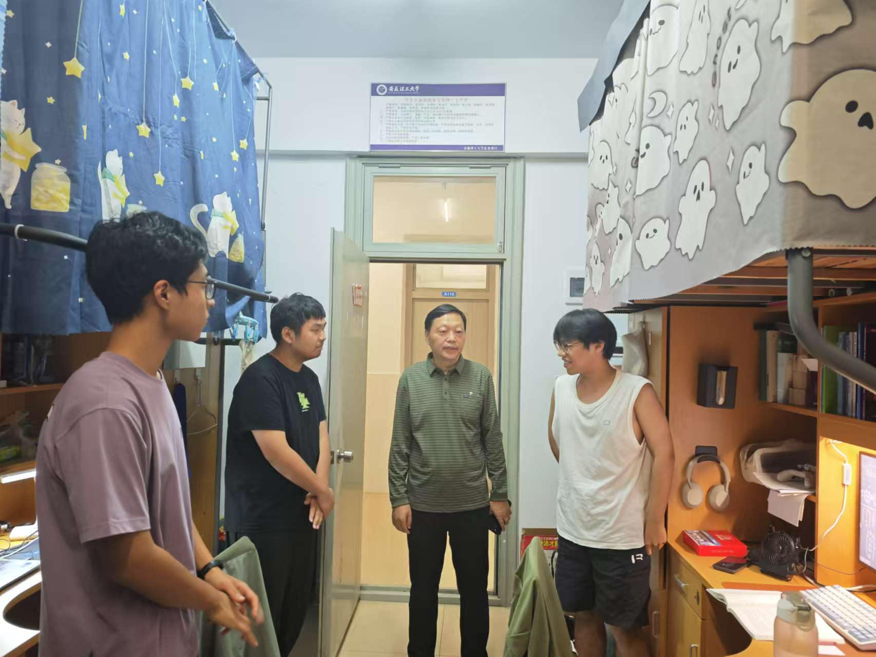 走访过程中,王永祥与同学们进行了亲切交流,细致询问了大家的课程学习、生活状况与未来规划,并针对学业困惑、职业发展等问题给予了耐心指导。同时对宿舍安全卫生进行了细致检查,叮嘱同学们增强安全意识,杜绝安全隐患,共同维护整洁和谐的居住环境。王永祥还为同学们送去了国庆、中秋双节的祝福。