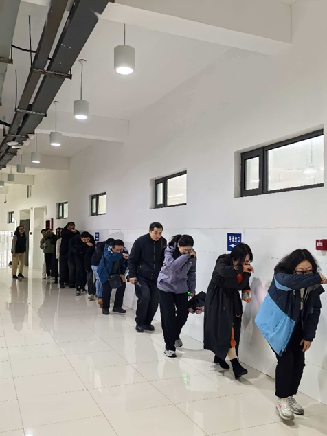 理论学习后,实战演练有序开展。本次演练设置消防疏散演练、地震应急演练两大核心环节,模拟真实突发场景。大家全程遵守现场指挥,按照预设路线快速有序完成疏散与应急处置,切实提升了自我保护与团队协作能力。