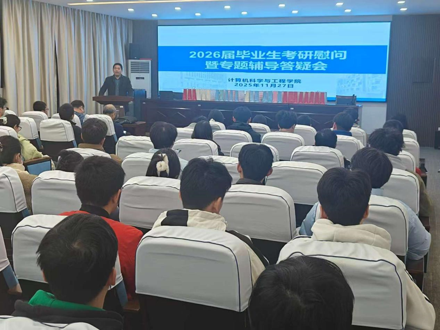 为切实助力2026届考研学子冲刺备考,缓解备考压力,强化复习实效,11月27日,计算机科学与工程学院在求本楼A401开展考研慰问暨专题辅导答疑活动。学院党委副书记葛斌、相关教师、毕业班辅导员及2026届考研学子代表参加活动。