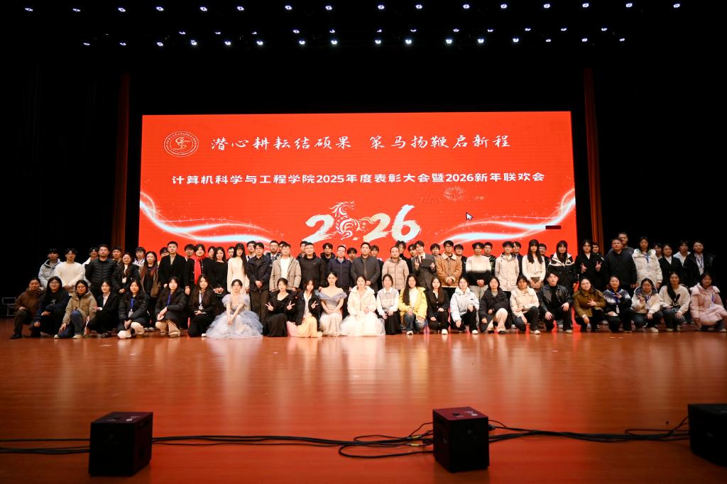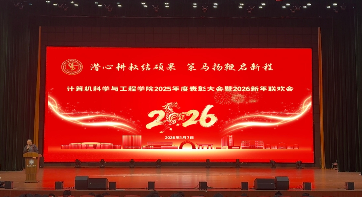 1月7日晚,计算机科学与工程学院在学校双创中心报告厅隆重举行2025年度表彰大会暨2026新年联欢会。学院领导班子成员,教师代表、辅导员以及学生代表近1000人参加了此次活动。