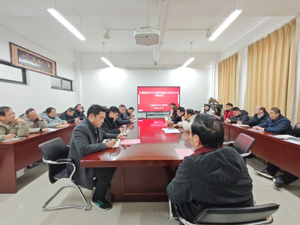 1月21日,计算机科学与工程学院在求本楼B403召开就业与安全工作专题会议,部署年末及寒假期间安全与就业相关工作。学院领导班子、系主任、研究生导师、毕业班辅导员等30余人参会。