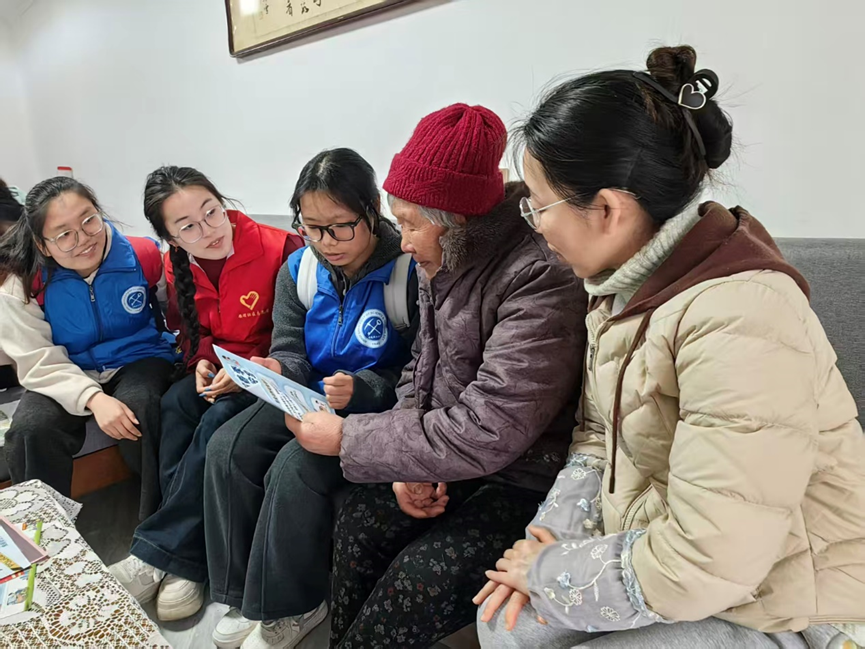 同学们与老人进行交流