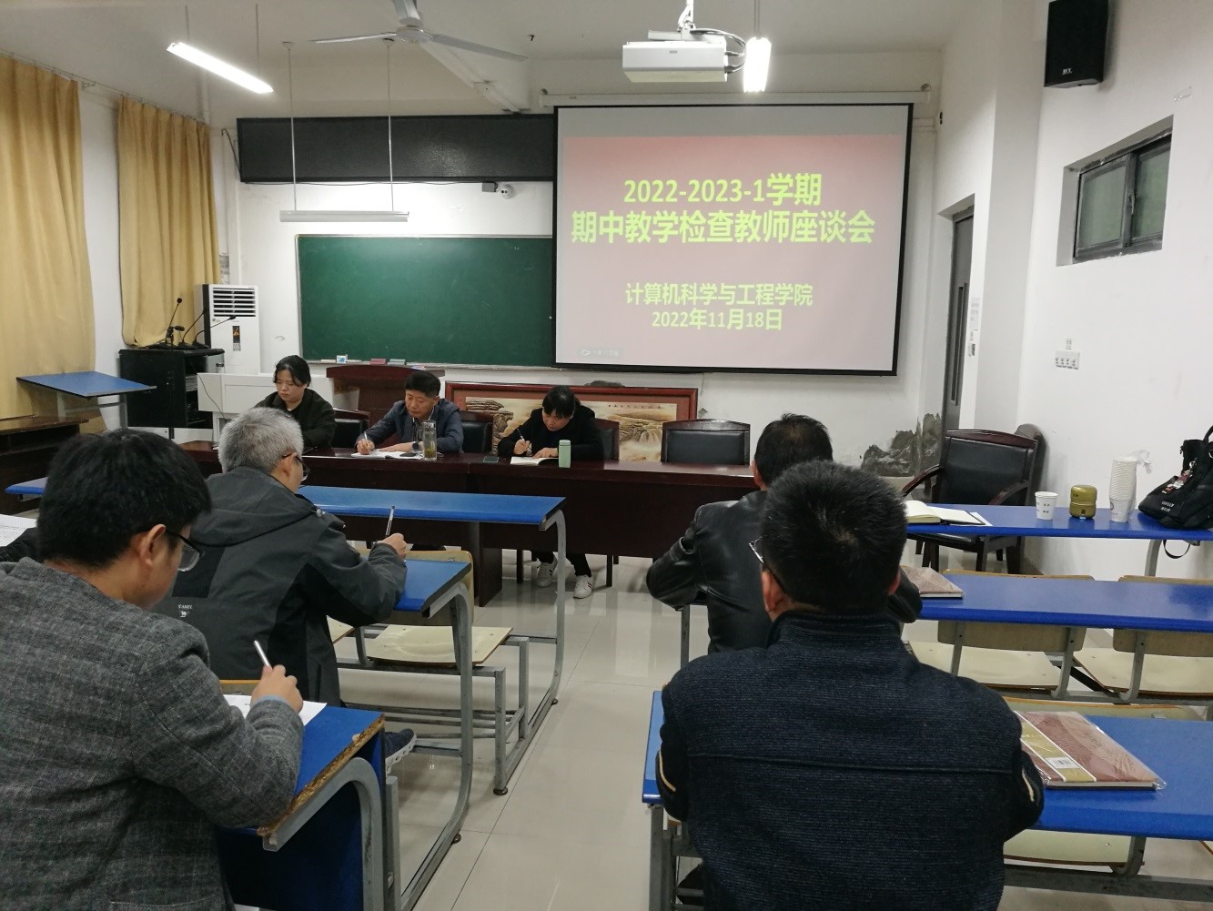 11月18日下午,计算机科学与工学院在求本楼B401室召开期中教学检查教师座谈会。会议由副院长周华平主持,副校长孟祥瑞、教务处副处长陈庆玲、学院各系和实验室主任、教师、辅导员代表等32名教师参加了会议。