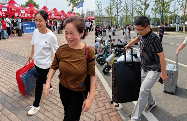 新生报到处人头攒动,支部党员深入学生和家长中间,及时为新生和新生家长解答问题、搬运行李等。