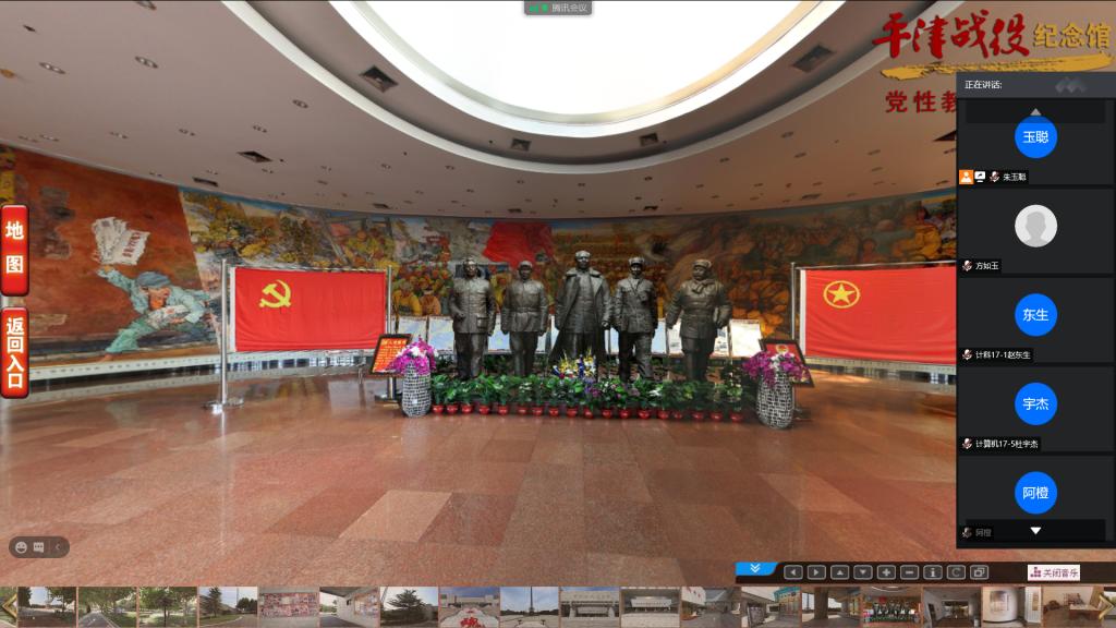由于疫情防控的需要,学生党支部充分利用网络资源平台,在校内积极开展“红色精神永放光芒”主题党日活动。11月6日上午,研究生党支部党员在明理北104教室通过在线VR实景技术演示,参观了深圳东江潮红色文化博物馆,详细了解了中国共产党的光荣传统、宝贵经验和伟大成就;11月6日下午,本科生党支部通过“腾讯会议”平台形式,在线参观了平津战役纪念馆。同学们依次走进相隔千里的平津战役战役决策厅、战役实施厅、人民支前厅和伟大胜利厅,接受了一次深刻而生动的革命传统教育。