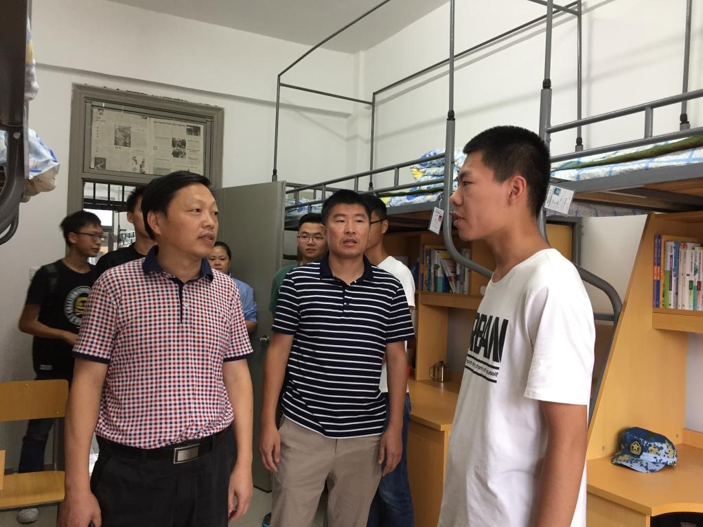 为了解我院新生住宿和生活情况,引领新生尽快适应新生活新环境,让新生充分感受到我院领导老师对新同学的关怀,9月10日下午,计算机学院党委书记王永祥,副书记兼行政院长张旸,团委书记范涛,18级辅导员李恕洲、赵威一行前往仁苑、信苑宿舍楼慰问2018级新生并检查内务。
