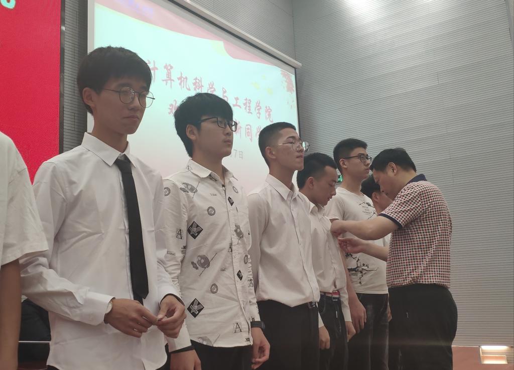 教育新生爱国、爱校从入学第一堂课开始。在嘹亮而雄壮的国歌声中,拉开了学院2019级新生入学教育第一课——爱国教育,据悉计算机学院每年都将爱国教育放在新生入学教育的第一课,增强当代大学生的爱国心。在校歌声中,学院党委书记王永祥、执行院长赵前进为2019级新生代表佩戴了校徽,让新生感受到了加入安理这个大家庭的自豪感,也让新生入学教育更显仪式感。