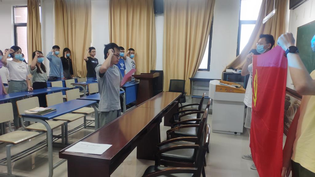最后,毕业生党员在鲜红的党旗下重温入党誓词,坚定入党初心。
