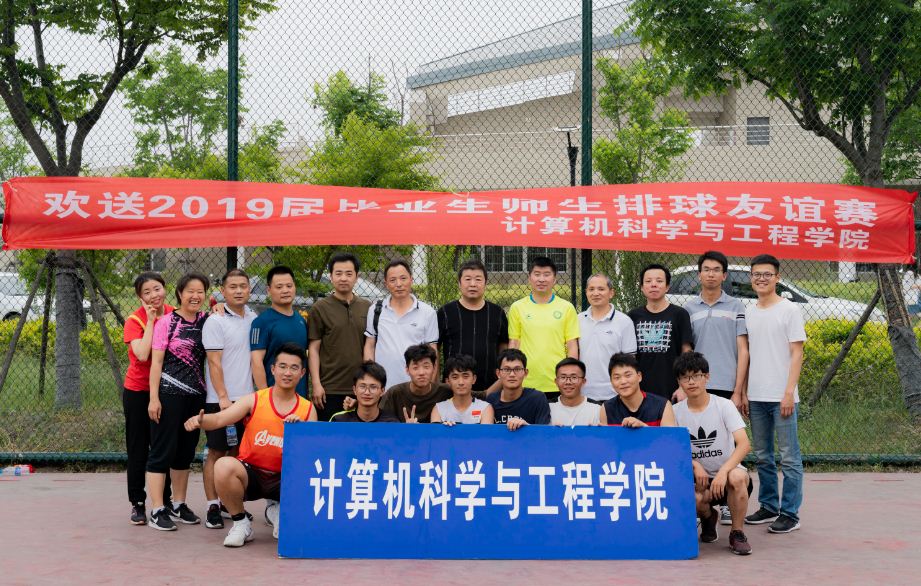 5月24日下午,计算机科学与工程学院分工会欢送2019届毕业生排球友谊赛在至诚体育场排球场火热开赛。由学院执行院长赵前进等老师组成的教工队和2019届毕业生联队交手。老师们在球场上一改往日严肃沉静的学者形象,打起球来英姿飒爽、气势逼人,同学们面对老师丝毫不畏惧,沉着迎战,双方实力相当,战况激烈。
