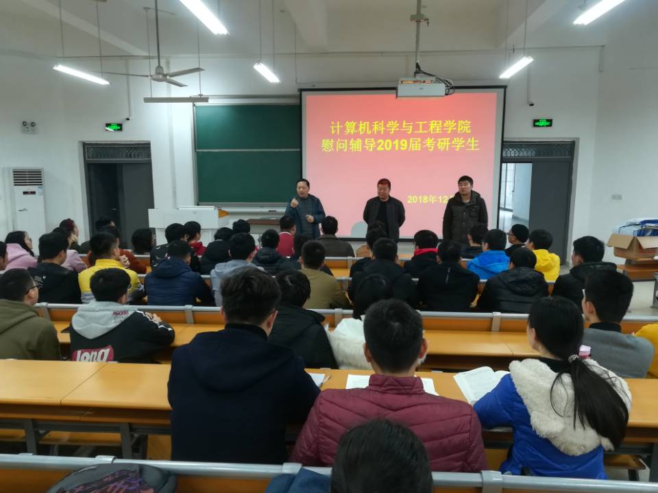12月3日中午,计算机科学与工程学院在天工201教室对240余名考研同学进行了慰问和辅导。计算机学院党委书记王永祥、执行院长赵前进,党委副书记兼行政副院长张旸,毕业班辅导员赵威参加了慰问辅导活动。
