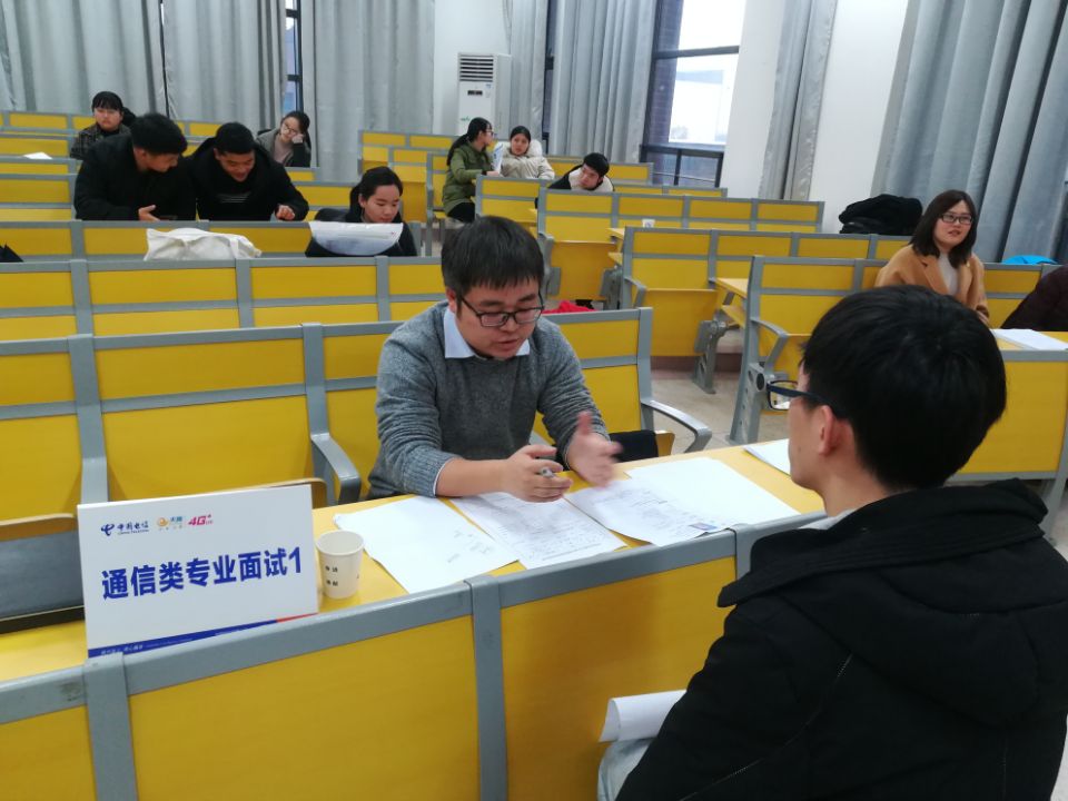 12月26日下午,应计算机学院邀请,中国电信安徽分公司、南京联迪信息系统股份有限公司、安徽博约信息科技有限公司、科大国创软件科技股份有限公司、合安信息科技有限公司等五家企业在明理楼202举办2019届毕业生专场招聘会。学院党委书记王永祥、执行院长赵前进、党委副书记兼行政副院长张旸莅临现场,毕业生辅导员赵威及150余名毕业生参加了招聘会。
