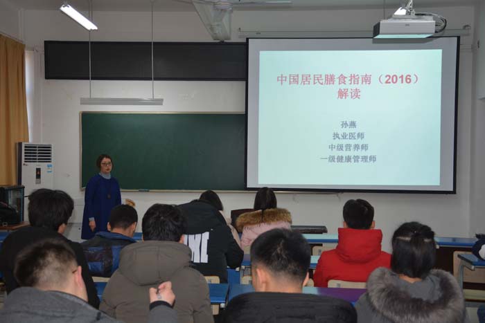 12月28日下午,应计算机学院的邀请,国家中级营养师、淮南市营养学会副会长孙燕在求本楼B401报告厅作了题为《中国居民膳食指南(2016)解读》的健康知识讲座,学院60多名师生聆听了讲座。讲座由学院党委书记王永祥主持。
