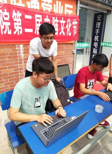 5月20日至21日,计算机学院学生会联合信苑联通营业厅在信苑广场进行了为期两天的电脑义诊活动,帮助需要的同学们修复计算机系统、进行软硬件病毒检测、安装电脑软件等,并为过往的同学们普及电脑日常使用及维护知识。