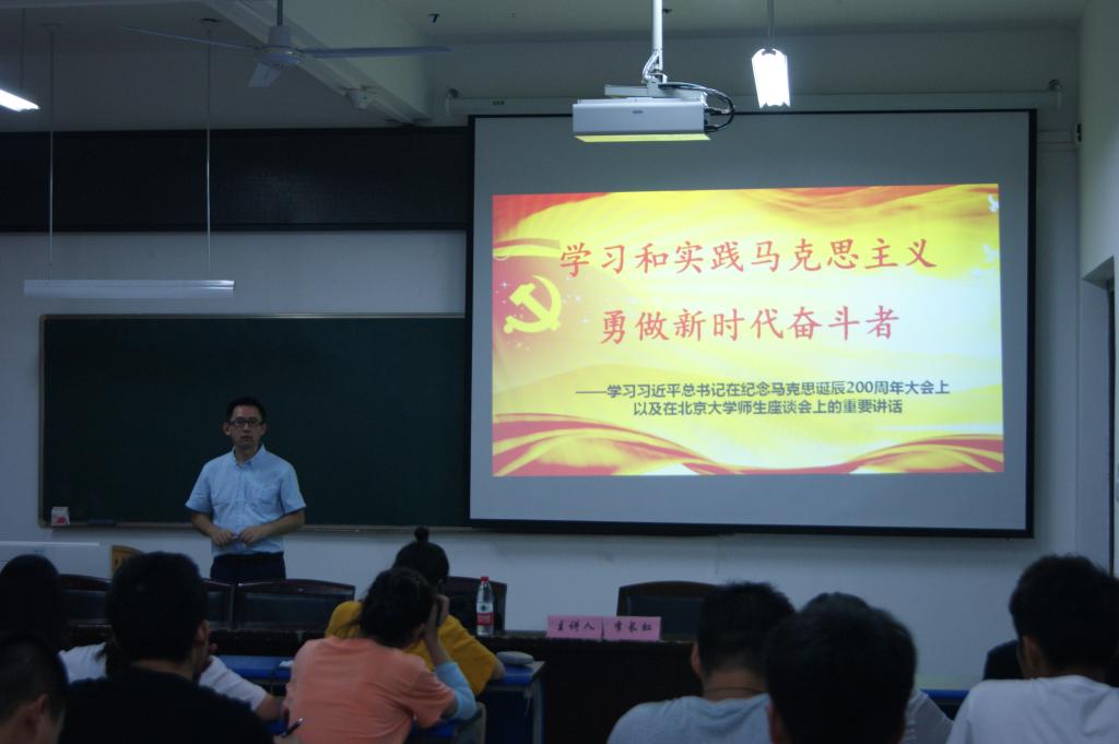 本次讲座内容共4个部分,分别是马克思生平的介绍、马克思主义理论的阐述、马克思主义的学习和实践以及对广大青年的四点希望。李长虹老师以简明的时间轴来介绍时代伟人马克思,辅以关于马克思的短视频和趣味图片讲述,最后引用习近平总书记的话来总结马克思的一生,整场讲座一直沉浸在轻松愉快的氛围之中。