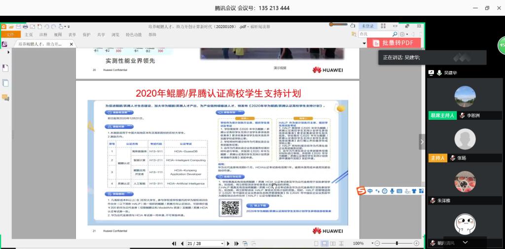 为进一步提升学生的专业实践能力,5月7日,计算机学院邀请华为公司安徽代表处政企业务交付与服务部副部长吴建华,为学院本科生开展华为鲲鹏昇腾认证线上交流会。线上认证交流会由计算机学院党委副书记兼行政副院长张旸主持,300余名学生参与了线上认证交流会。