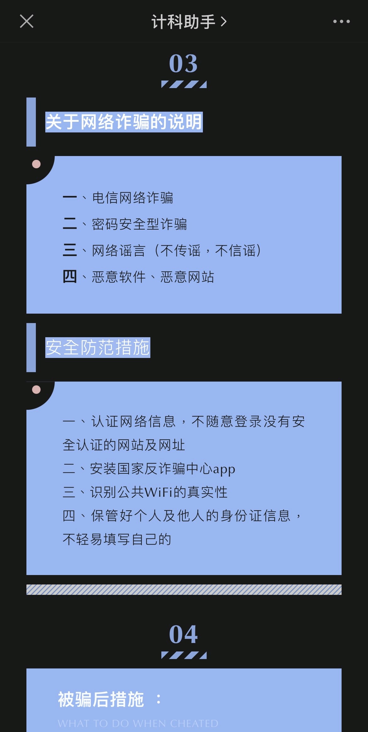 为有效预防电信网络诈骗,提高学生网络安全意识和防范能力,5月10日至16日,计算机学院开展了“筑牢反诈防线,共建和谐校园”线上线下相结合的反诈系列宣传活动。活动涉及全院2300余名师生,覆盖60个班级。