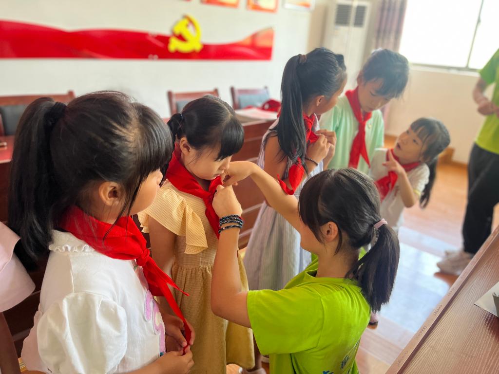 8月1日至3日,志愿者们分别来到祁门县李源村和恒峰村,在村委会的组织下,为全村留守儿童开展了暑期公益课堂。志愿者以少先队员的标志:红领巾与少先队徽为例,详细介绍了少先队员的责任和义务。并辅之以红色教育短视频,进一步增强少先队员们对少先队的理解,认识到自身的历史使命感与责任感。志愿者们细心地为每一名孩子们佩戴红领巾和少先队队徽。在齐唱少先队队歌声中,少先队员们用自己嘹亮的歌声,唱出了身为一名少先队员的光荣和自豪!