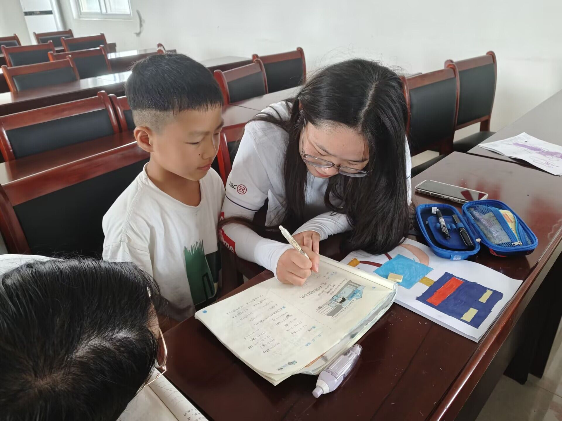考虑到村内教育资源有限,孩子们暑期作业难题难以解决,7月19日下午,志愿者为留守儿童们开展了辅导答疑活动。团队成员们以满腔的热情耐心地解答孩子们学习上的疑惑,传授知识,激发学生的学习兴趣,为乡村教育的振兴贡献安理力量。