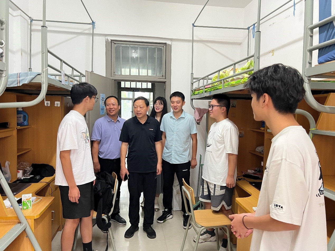 9月12日上午,学院领导与新生辅导员一同深入新生宿舍,亲切地与新生交谈。学院领导向新生介绍了丰富多彩的校园文化、各种社团组织以及学校和学院的发展规划,鼓励新生们努力学习专业知识,积极参与社团活动,锻炼自己的综合能力,在实践中不断成长。同时,也强调了学校的规章制度,希望同学们能够树立良好的纪律意识,营造和谐有序的宿舍环境。