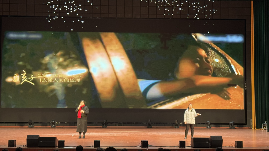 表彰大会结束后,2026新年联欢会在欢腾的开场舞《What’s love》中拉开帷幕,13个节目有序进行。《是妈妈是女儿》《春暖花开》等歌曲唱出师生对美好的向往,小品《X计划》与情景剧《外卖风波》真实再现校园生活,朗诵《血泪与荣光》抒发了对祖国的热爱,中国舞《青花瓷》与汉服秀《汉中游》展现出强烈的文化自信。晚会在激昂的团委会歌合唱中圆满落幕。