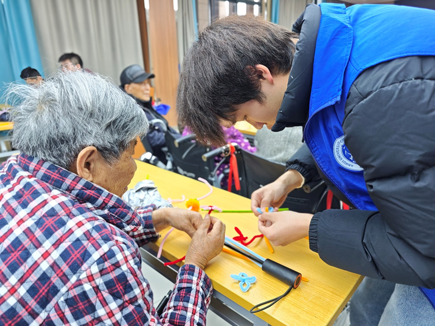 志愿者与老人共同做手工