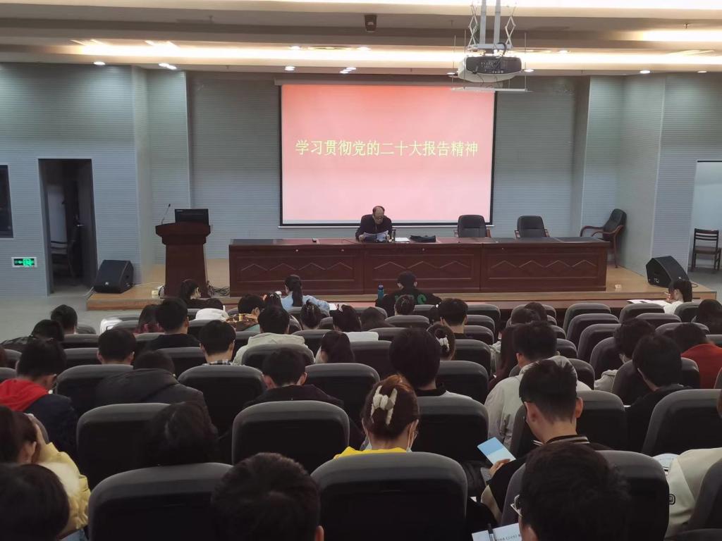 报告中,谢老师讲述了中国共产党发展历程中的 “政治热点关键词”,共计十二个部分。他通过对先进事迹的讲解和自身经历的分享,带领大家认真学习了习近平新时代中国特色社会主义思想的精髓要义。随后,他又从新时代的中心任务为切入点阐述了党的二十大的重要意义,全面解读了党的二十大精神,鼓励青年人要不忘初心,牢记使命,使全院师生对新时代新征程下中国共产党人肩负的使命任务有了更加深刻的体会和感悟。