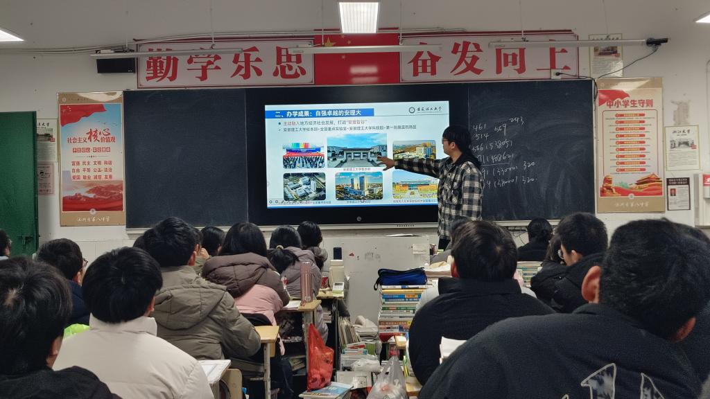 2026年1月26日,安徽理工大学计算机科学与工程学院组织2023级学生党员严诚慧、朱睿分别返回母校宁国中学和池州市第八中学,开展了“学子归巢”招生宣讲活动。两位同学通过分享自己的学习经历、生活故事以及在校成长的点滴,向学弟学妹们传递了母校的教育理念与校园文化。